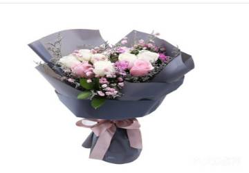 上海花千坊爱上海7支白玫瑰+2支粉玫瑰鲜花束,如图 |