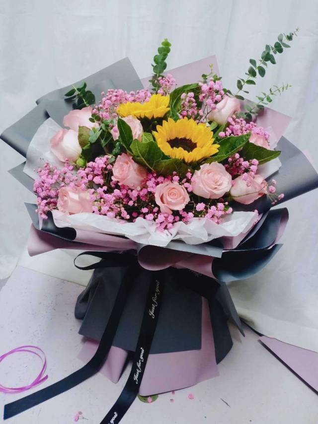 上海花千坊爱上海9支红玫瑰配满天星花束,如图 |