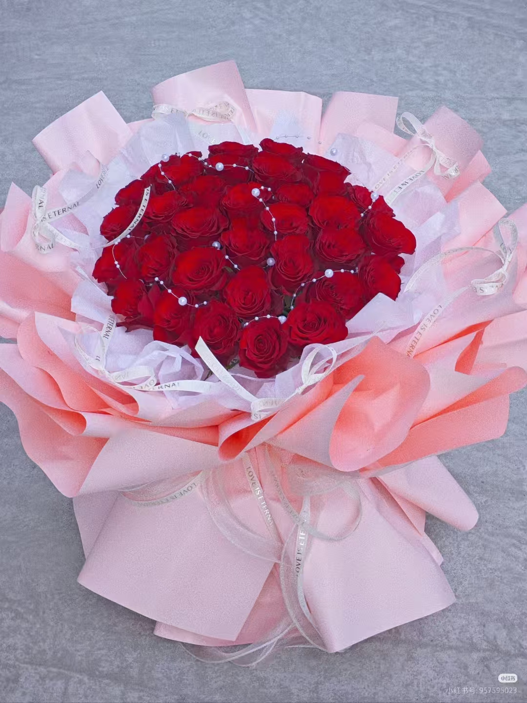 上海花千坊爱上海9朵粉玫瑰2朵白玫瑰混搭满天星花束 按图 |