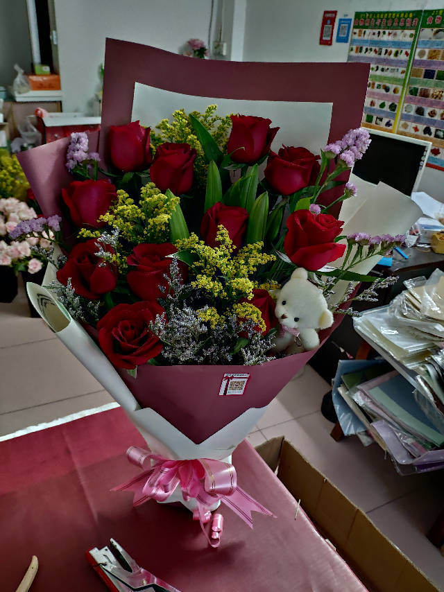 上海花千坊爱上海99朵玫瑰花束,客人上门时代收52元货款。 |