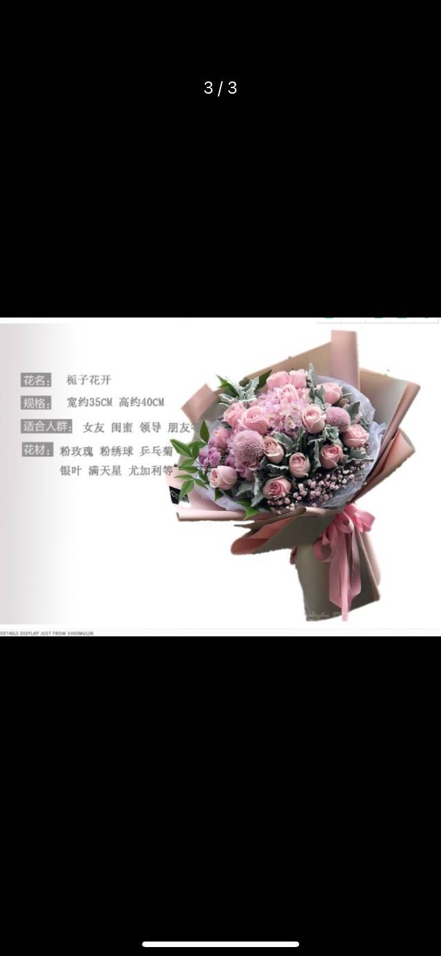 18朵粉玫一朵绣球加配花如图做好看 |