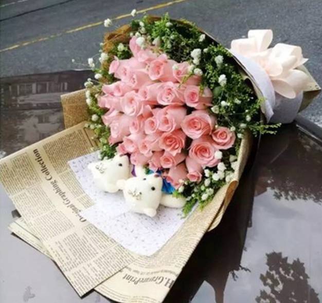 33支粉玫瑰花束2小熊(粉色不够可搭配红色) |
