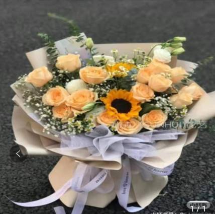 上海花千坊爱上海11支香槟玫瑰2向日葵混搭花束 数量:1 |