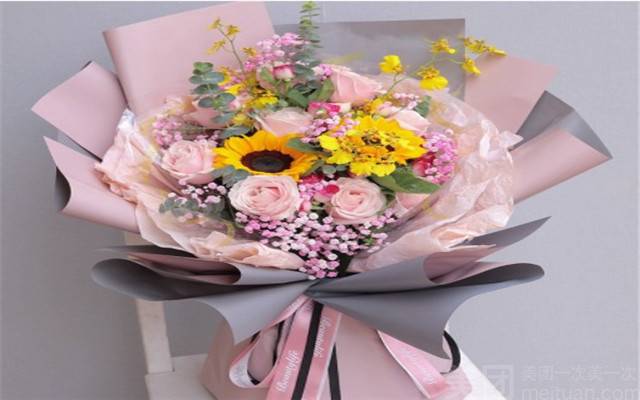 上海花千坊爱上海11朵粉玫2朵向日葵混搭花束 |