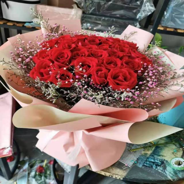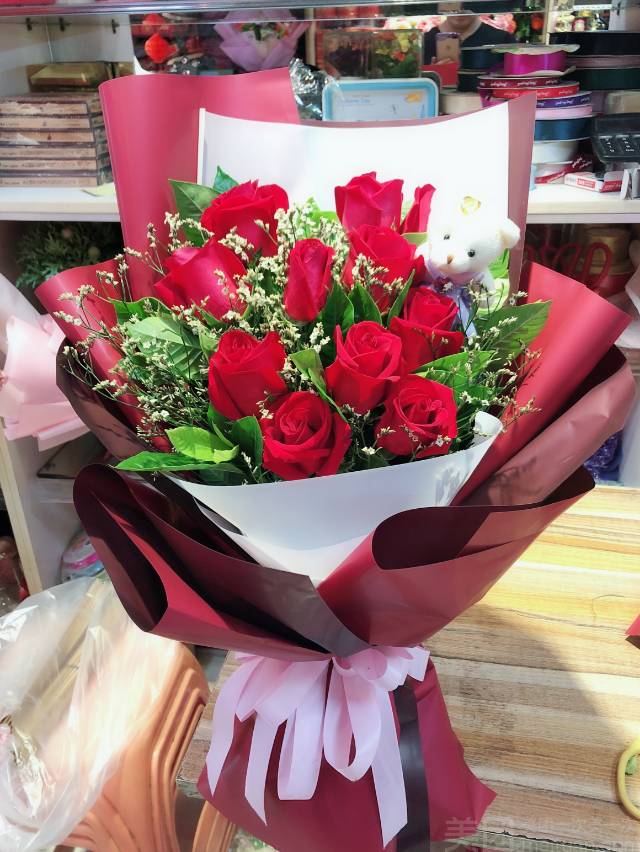 12朵粉玫瑰12朵粉百合花束,如图包 |