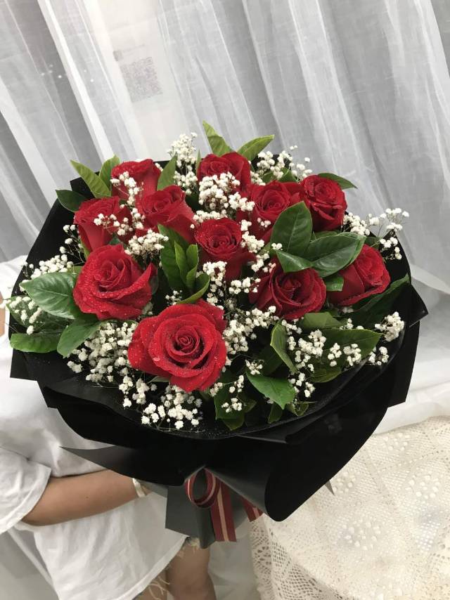上海花千坊爱上海7支白玫瑰+2支粉玫瑰花束 如图 |