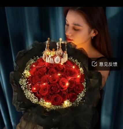 33支精品红玫瑰加彩灯加皇冠鲜花束,如图包 |