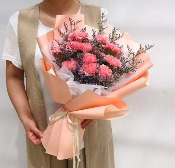 上海花千坊爱上海11支粉色康乃馨花束,如图 |