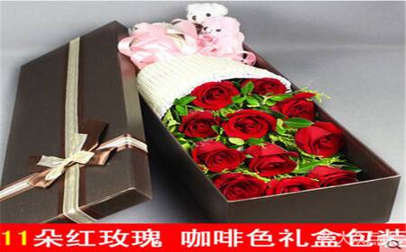上海花千坊爱上海11支红玫瑰鲜花礼盒2小熊,如图制作 |