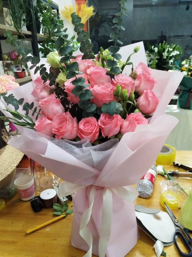 上海花千坊爱上海19朵戴安娜 花束(多点配叶),如图包装大气好看,有卡片,做好马上送。 |