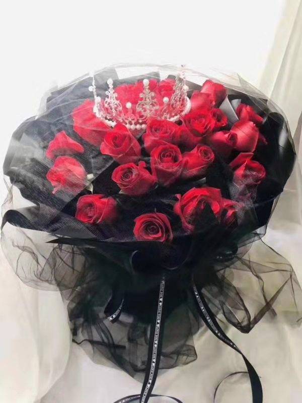 19支红玫瑰花束黑纱款加皇冠,如图制作 |