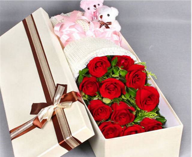 上海花千坊爱上海11朵红玫加2只小熊礼盒,如图 |