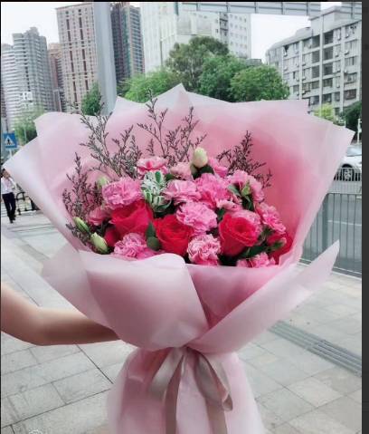 11朵粉玫瑰13朵粉百合花束,如图 |