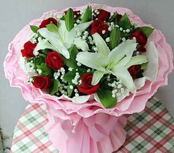 11支红玫瑰2支白百合花束,如图 |