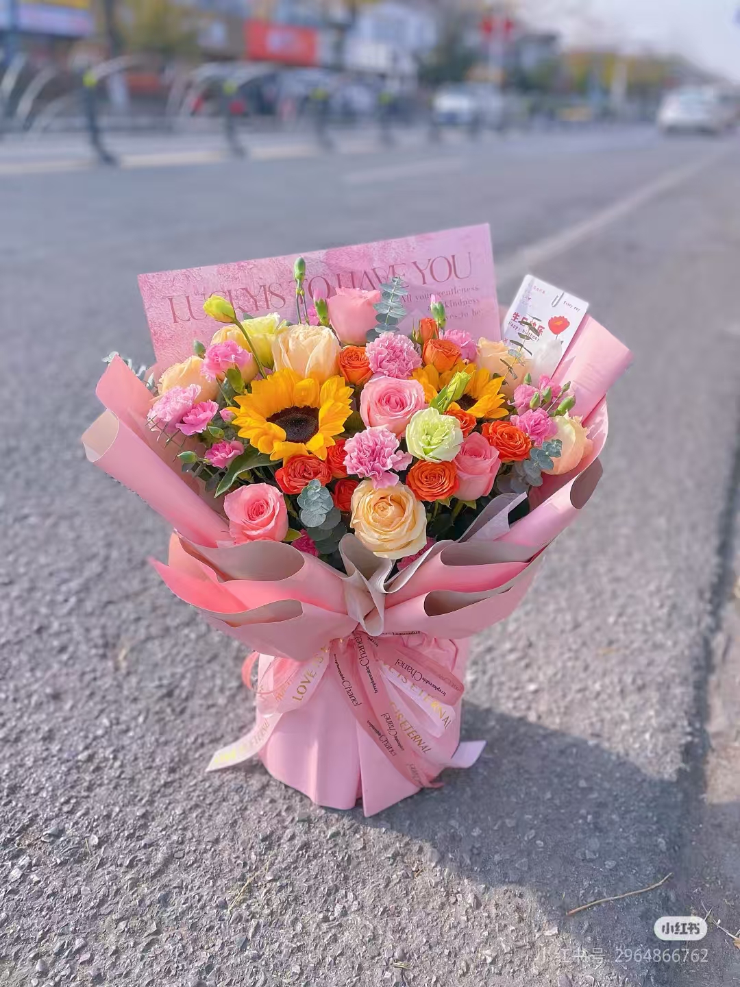 11朵红玫瑰8朵卡布奇诺混搭花束,按图包 |