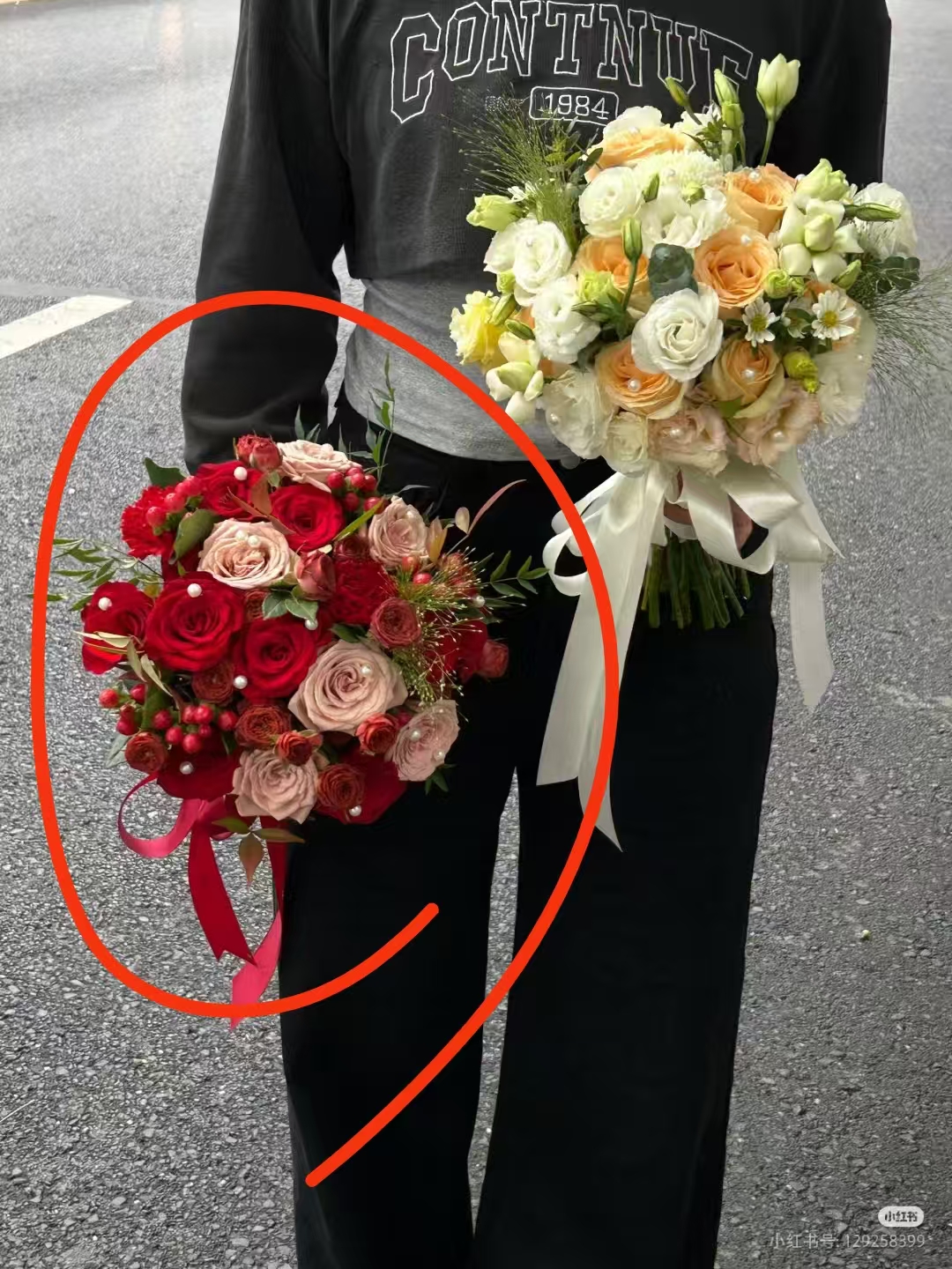 上海花千坊爱上海11支粉康乃馨2支多头白百合花束,如图 |
