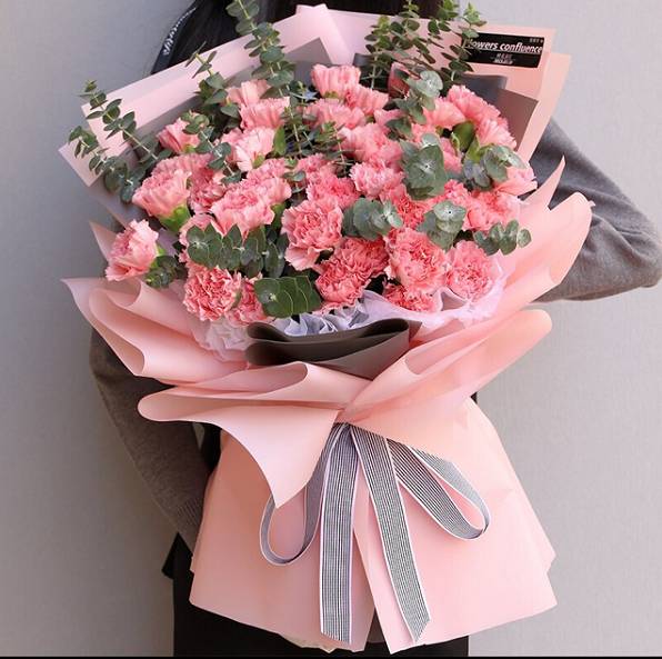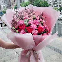 11朵粉色康乃馨4朵红玫瑰混搭花束如图,有卡片 ,做好马上送 |