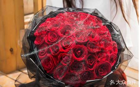 上海花千坊爱上海11朵红玫瑰花束,如图(配满天星黑色包装) |