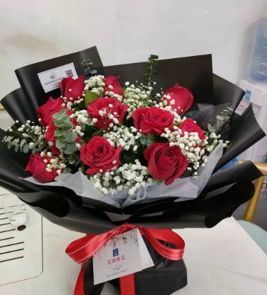 15朵粉玫15朵粉康乃馨2支多头百合配满天星绿叶混搭花束,如图 |