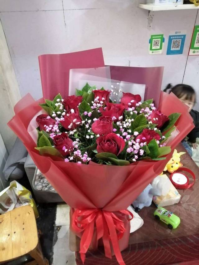 上海花千坊爱上海11朵红玫瑰花束,粉色包装,如图 |