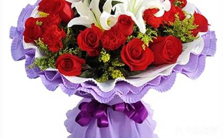 上海花千坊爱上海11朵红玫瑰 +8支红色康乃馨+5百合 |