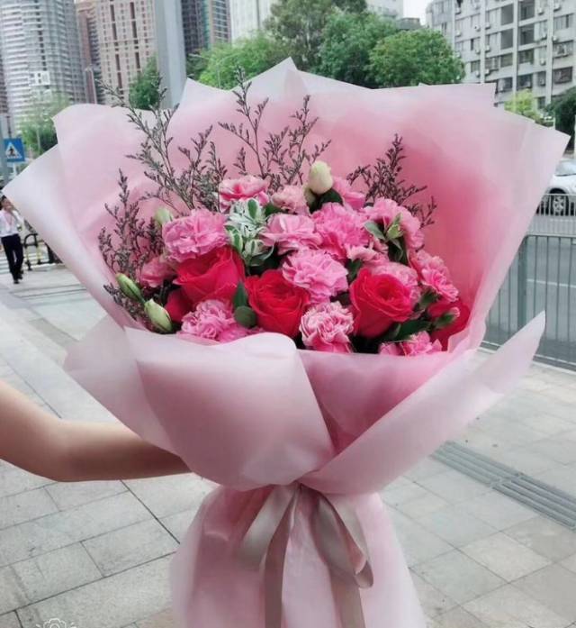 上海花千坊爱上海11支粉康乃馨4支红玫瑰花束,如图 |
