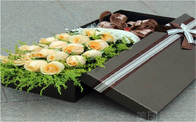 19朵香槟玫瑰鲜花礼盒如图,花材保证新鲜、搭配好看,拍照上传 |