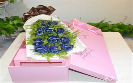 11支蓝色妖姬鲜花礼盒如图 |