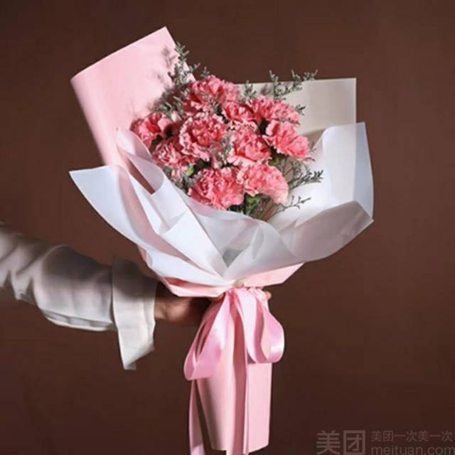 19支红康乃馨加一支多头白百合花束。如图包 |