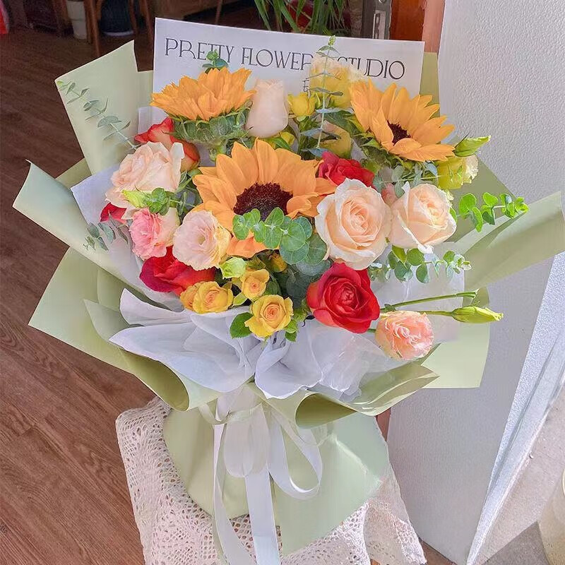 上海花千坊爱上海19朵香槟 6朵向日葵 按图包装款式做 |