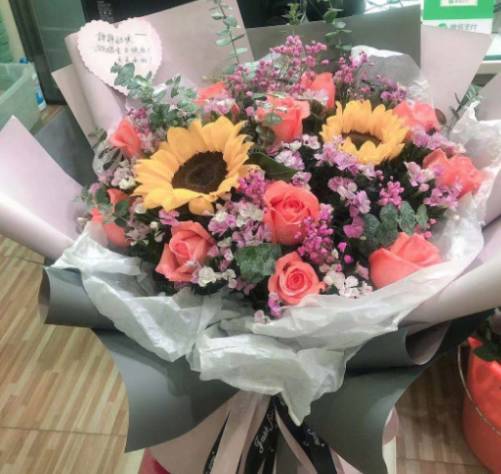 11朵粉康乃馨4红玫瑰花束 如图 |