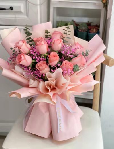 3支向日葵5支香槟玫瑰配橙泡泡洋桔梗混搭花束,如图 |