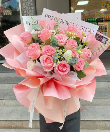 上海花千坊爱上海19枝红色康乃馨花束 (红色包装纸) |