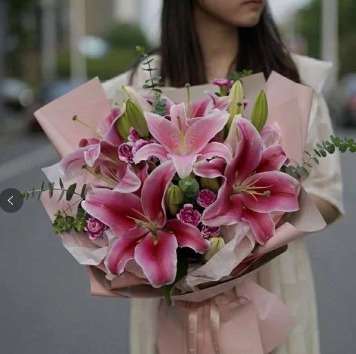 上海花千坊爱上海10支多头粉百合花束,如图包装大气好看,有卡片,做好马上送。 |