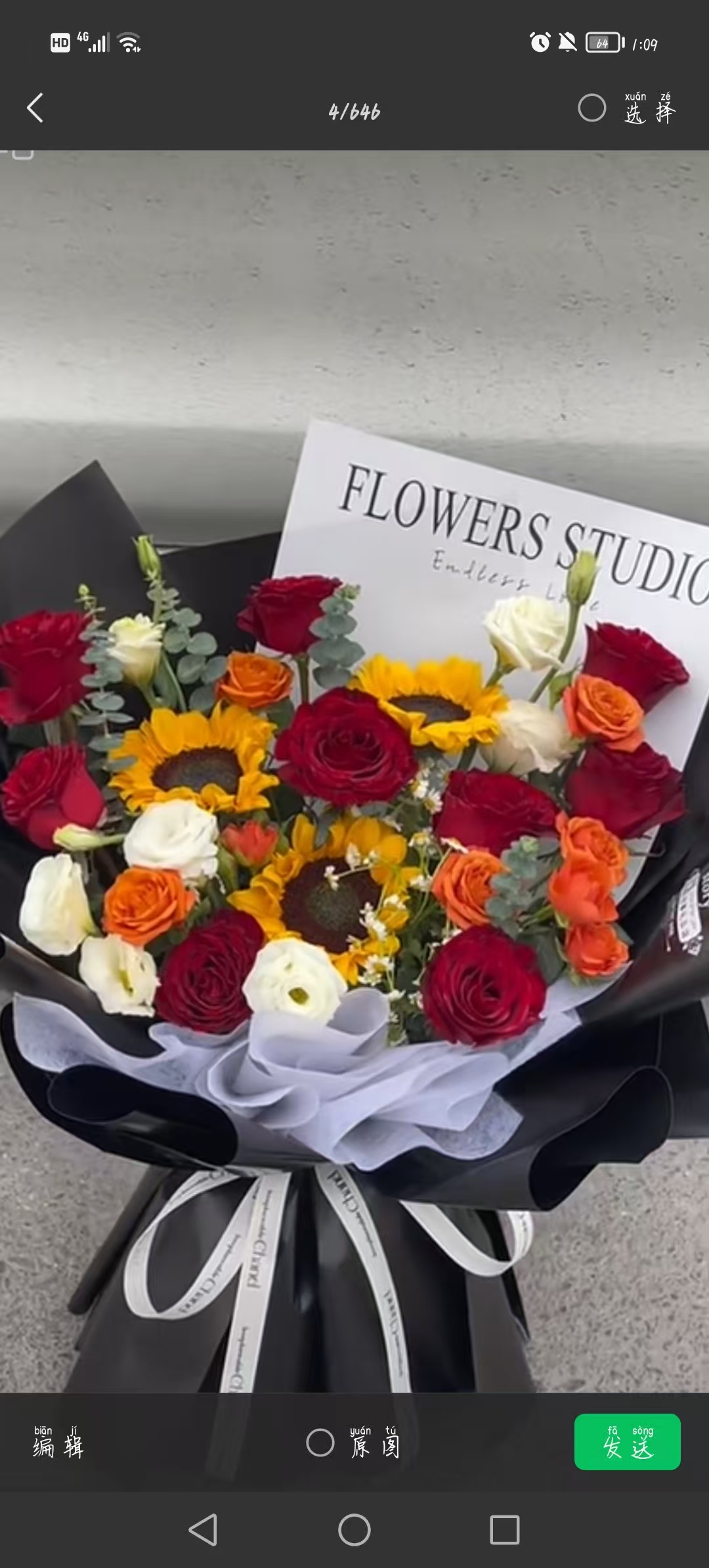5支香槟3支向日葵花束,如图 |