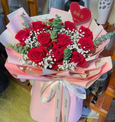 上海花千坊爱上海11支红玫满天星花束,如图 |