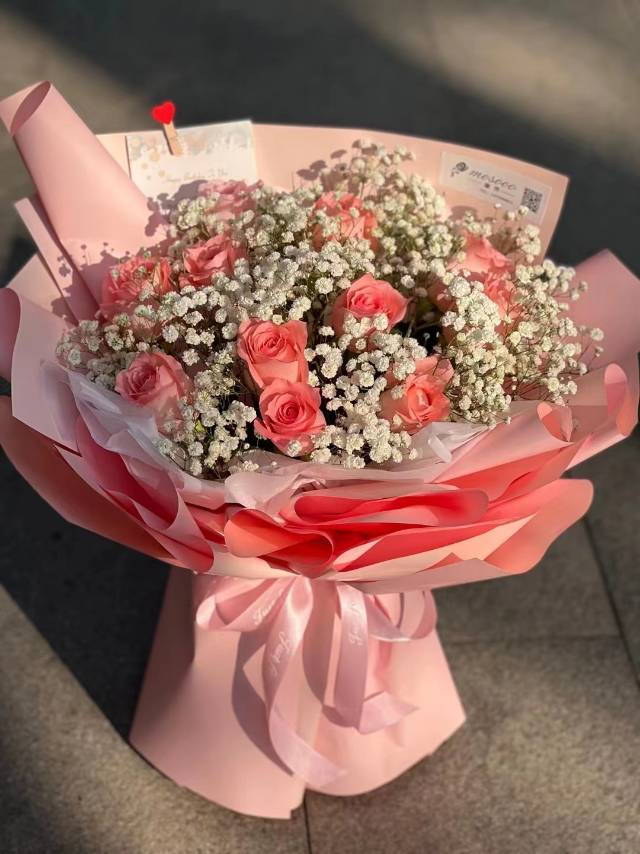 上海花千坊爱上海19朵粉玫瑰加白星鲜花束,如图包 |