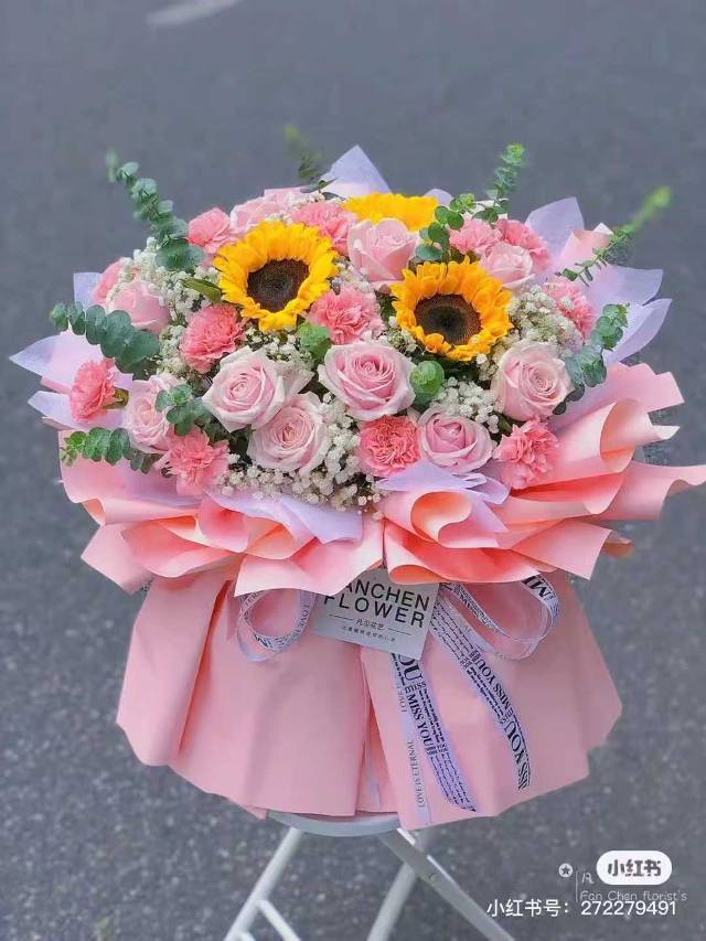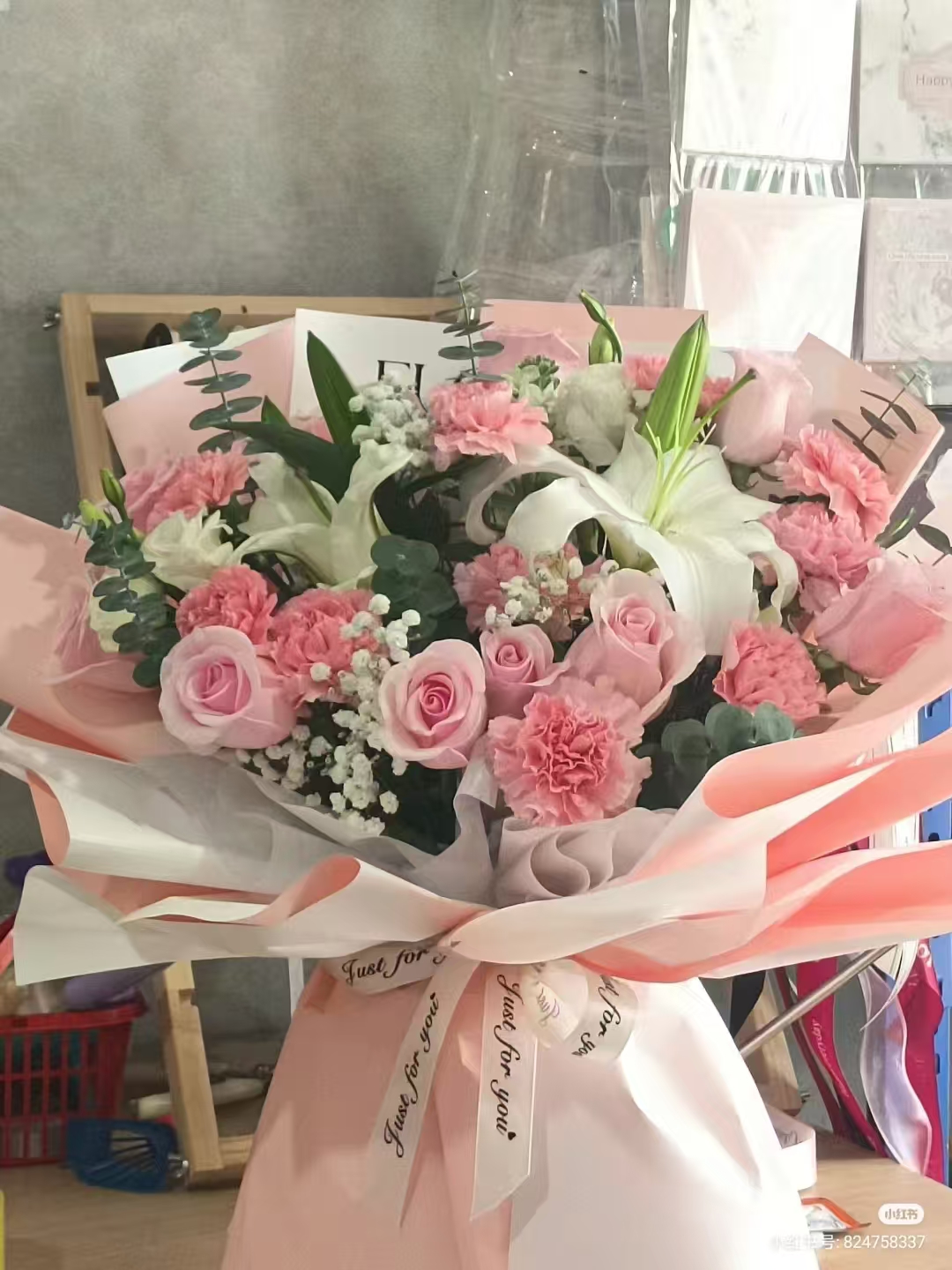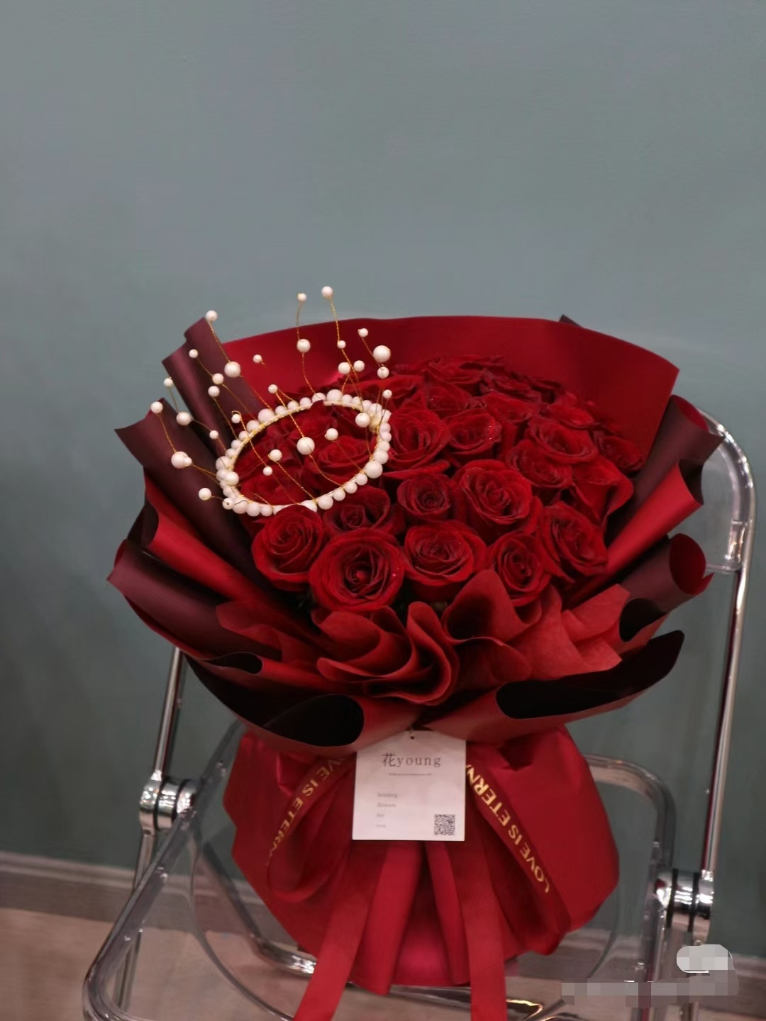 上海花千坊爱上海52朵红玫瑰花束加皇冠,33朵粉康乃馨花束(共2束) |