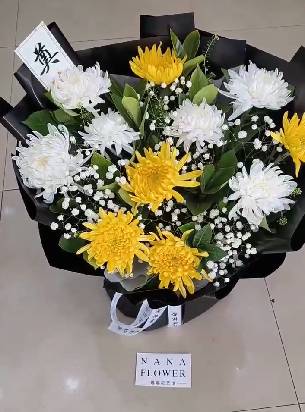 7朵黄白菊花+白色满天星混搭花束 按图 |