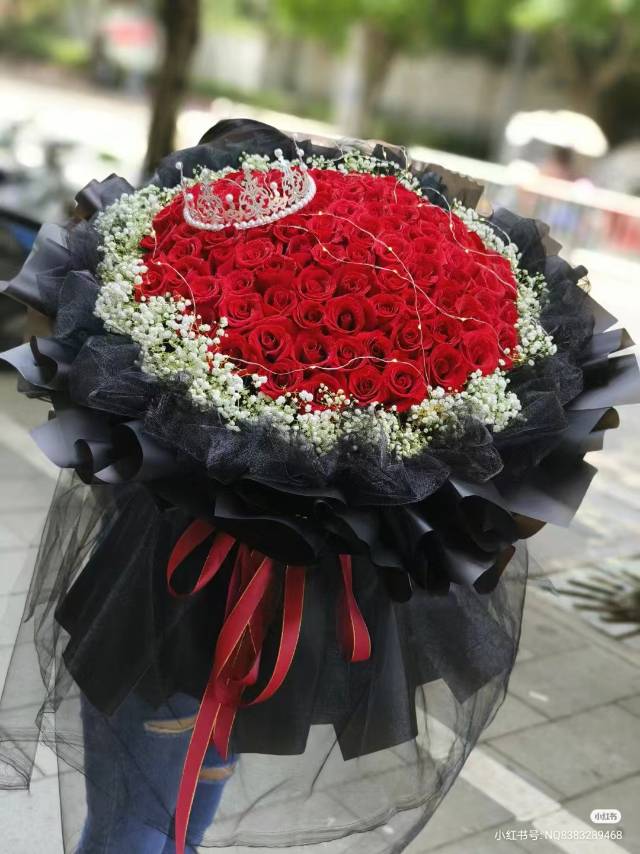 上海花千坊爱上海99支红玫花束黑纱款,加皇冠加灯 如图