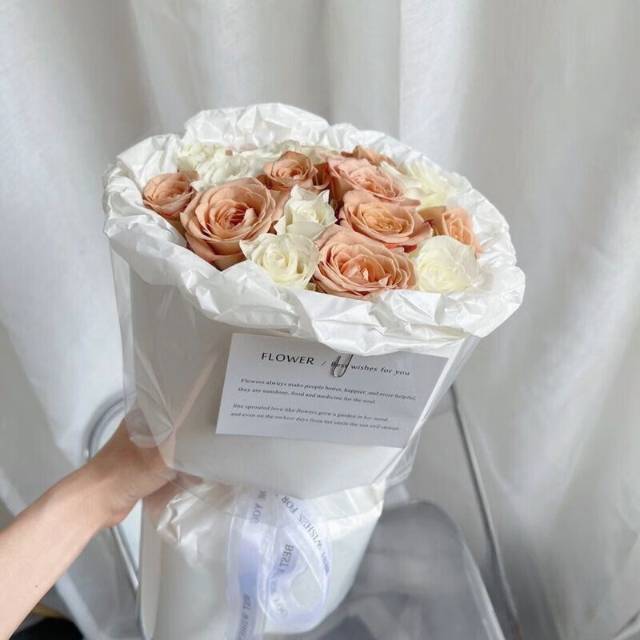 上海花千坊爱上海15枝卡布奇诺白玫瑰混搭花束 |