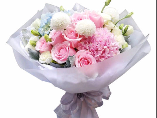 上海花千坊爱上海绣球一枝八枝香槟玫瑰桔梗绿叶点缀